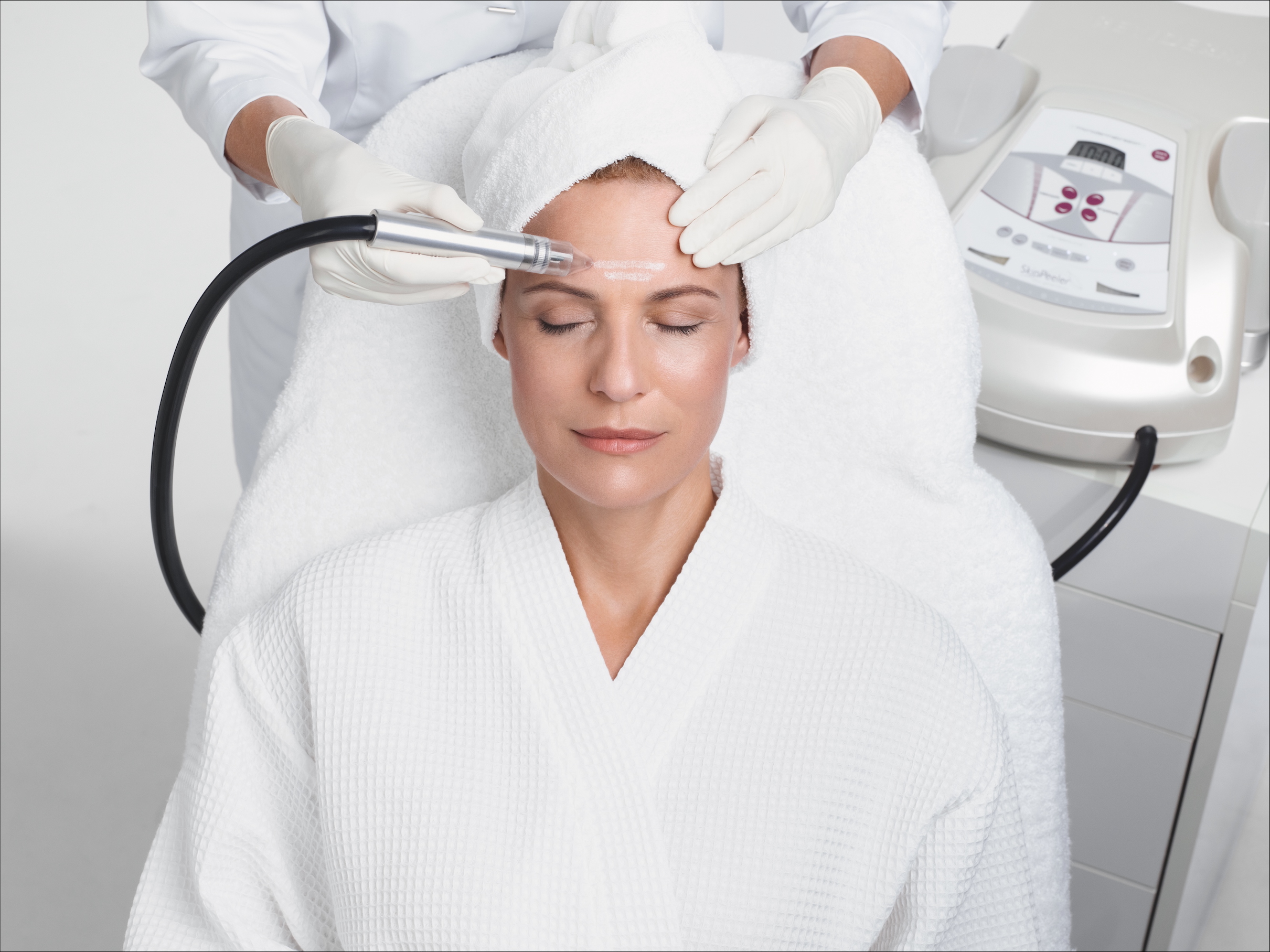 Bringen Sie Ihre Haut zum Strahlen - mit der Microdermabrasion. Hinter dem medizinischen Fachbegriff verbirgt sich ein effizientes Intensiv-Peeling mit Mikrokristallen. Das komplett schmerzfreie Verfahren verfeinert Ihre Poren sichtbar - für ein glattes und zartes Hautrelief.